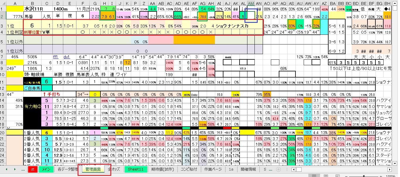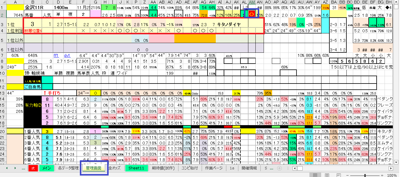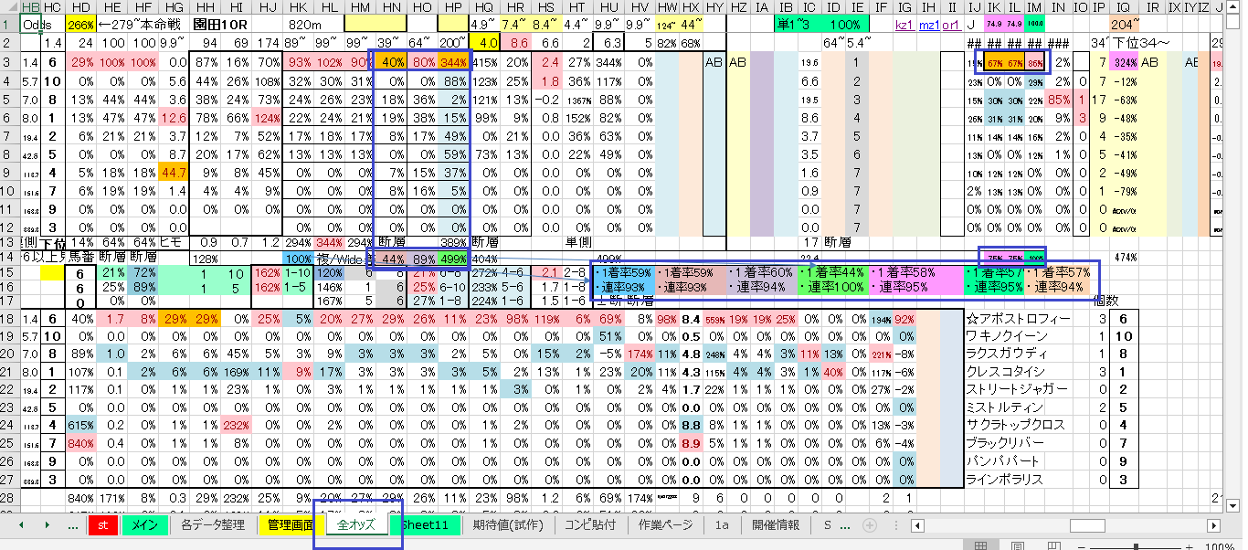 全オッズタブのHNあたりの青囲い部分の指数が規定値を超えていれば
