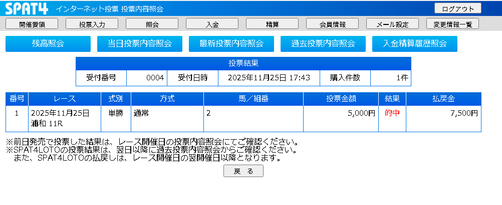 結果は元返しも含めて5戦5勝となります。