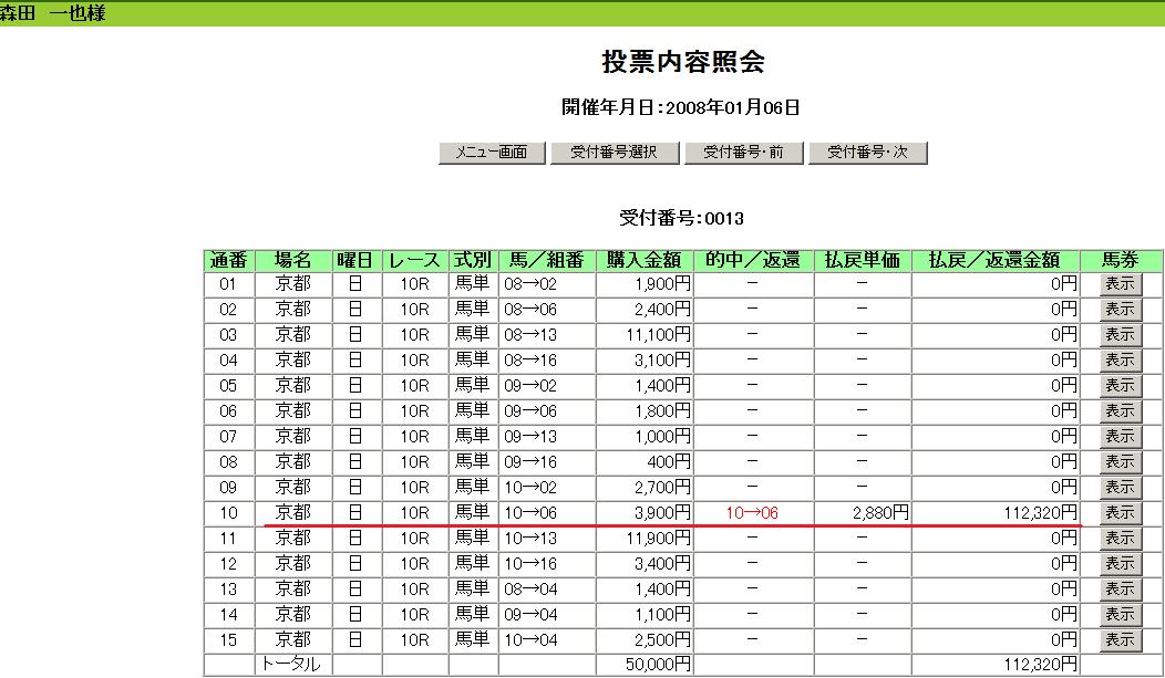 最終週の競馬は10万以上奪取は3本と寂しい結果でした